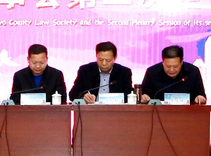 会议首先由吴显作县法学会2019年工作报告。他说,2019年是县法学会换届后的第一年,按照年初确定的“五个1”工作目标,超额完成了任务,概括为“1234567”。“1”是承办了一届年会,即山西省法学会法治教育研究会2019年年会;“2”是设立了法学会法律服务所和法学会法治教育研究会;“3”是参加了山西省法学会地方立法研究会在阳泉举办的地方立法研讨会、山西省法学会法理学研究会在大同举办的基层公共法律服务研讨会和运城是法学会承办的第十届晋陕豫“黄河金三角法治论坛年会”;“4”是编辑印发了四期《法学阶梯》内部期刊;“5”是积极撰写了五篇优秀法学论文,或官网发表,或参会获奖;“6”是开办了《晋国法学》微信公众号,六个月全天候、不间断推送法律法规、理论文章和法务实例达720篇,其中原创文章占六分之一;“7”是通过上述努力,实现了中央政法委秘书长陈一新提出的法学会的“七个独特作用”。