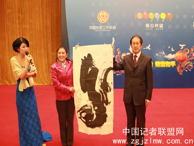殷大师与全国工商联副主席孙晓华在和平周捐赠现场