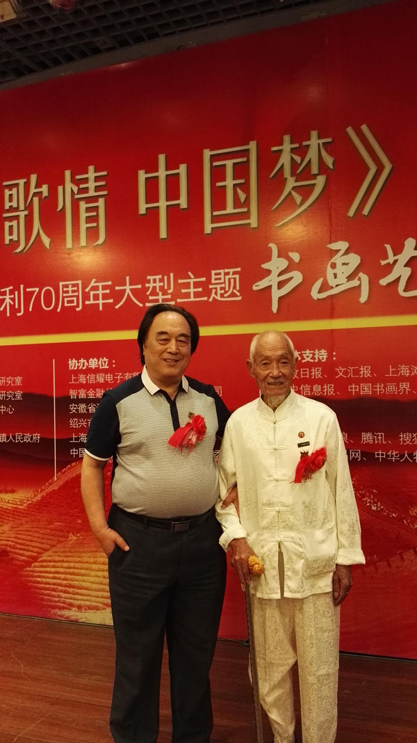 中国记者联盟网上海讯 近日,中国文化经济国际交流协会代西家文化委员会,与上海市委党史办、上海市史志办等单位联合举办了“国歌情 中国梦”纪念抗日战争胜利七十周年大型主题书画艺术展,协会主席周雁翔、副主席王宝玺、代西等领导应邀出席并参观了展览。