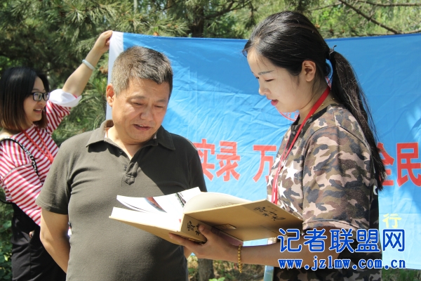 宛平城,青年一行采访了从济南前来旅游的李阿姨,听了“千县通典、万村修志、全民出书”活动的介绍后,她说:“你们编辑的《共圆中国梦·书写中国人》丛书选取各行各业人物的数个精彩纪实生活,真实生动地从平凡生活中展现中国人的精神风貌,发掘其心灵深处的人性光辉,让人物的最美瞬间与其真实生活的精神境界相互佐证,为读者提供一个可近可亲可感可学的立体最美人物形象。书中一个个扣人心弦的经典故事,再现国人怀揣梦想、追求梦想并实现梦想的心路历程,描绘出‘强盛中国、文明中国、和谐中国、幸福中国’的绚丽画卷,激励国人为实现中华民族伟大复兴的‘中国梦’努力奋斗。”