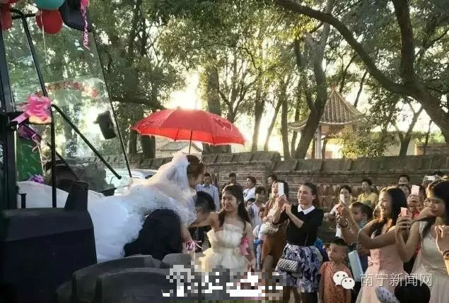 迎亲队伍所到之处,行人纷纷拍照录像,刷爆朋友圈的节奏。