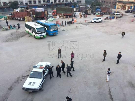 下午五点钟,该男子的遗体仍然留在现场,并没有见到该男子的任何家人前来,几位民警在现场维持秩序。