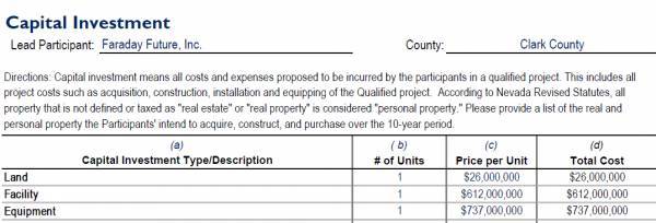 为了吸引“财神爷”造福内华达,州长提出向法拉第发行 1.75 亿美元政府债券以资助其建厂计划;当法拉第在内华达州境内的投资额超过 10 亿美元时,州政府还将给该公司解锁一个长期的免税和奖金补贴大礼包,其中包括长达 10 年的 75% 公司税、企业资产税和个人资产税抵减、长达 15 年的 100% 本地销售税抵减、 价值 3800 万美元可转移税收抵免,以及一笔用来偿付法拉第训练员工费用的补贴。这个大礼包,加上前面 1.75 亿美元的政府债券,价值超过了 2.15 亿美元。