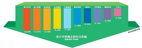 新京报讯 (记者金彧)受上周六证监会主席刘士余痛批“野蛮人”强盗式收购讲话的影响,12月5日,险资举牌概念股重挫,个股大面积下跌。截至收盘,格力电器、南宁百货、吉林敖东等个股跌停,中国建筑、金地集团跌逾9%,廊坊发展、南玻A、伊利股份等跌幅均超6%,梅雁吉祥、万科A也有超过3%的跌幅。