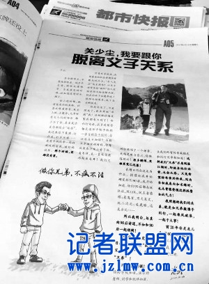 2月15日,杭州《都市快报》第五版整版刊登了一则题为《关少尘,我要跟你“脱离父子关系”》的声明。