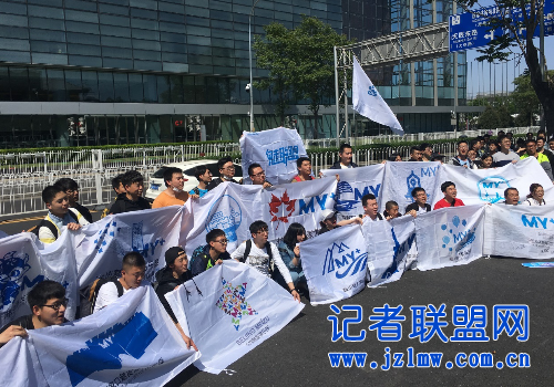 图:魅蓝E2发布会聚集在场外拍合影的魅族粉丝