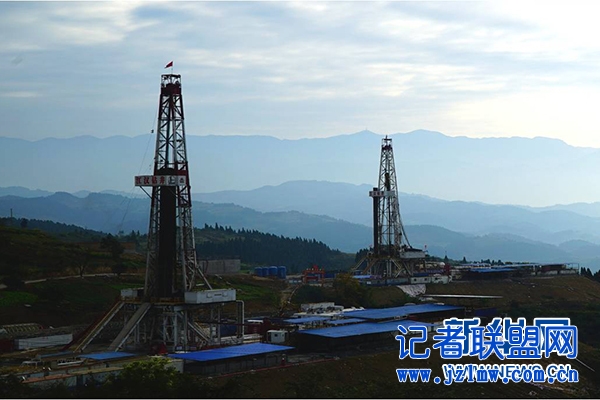 图为中石化涪陵页岩气田—乌江之畔双钻机