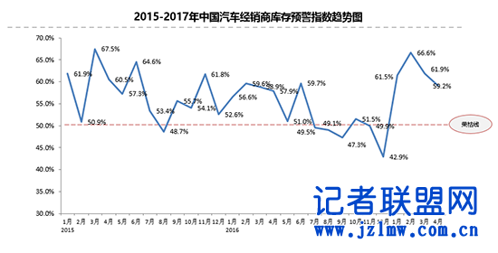 自进入2017年以来,经销商库存预警指数一直处于60%以上,4月份这一数据有所回落,下降到59.2%。“4月份是汽车消费周期传统的淡季,特别是在南方省份,当地的风俗习惯是在清明节前后不宜添置大中商品,严重影响汽车销量,所以预警指数仍然位于警戒线以上”,中国汽车流通协会副秘书长郎学红表示,4月份一部分地区开始春耕,季节的忙碌也会导致到店看车的人数减少,使得汽车销售整体状况不佳,经销商库存有所增加。