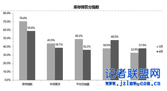 从预警分指数来看,4月份库存指数、市场需求指数、平均日销量指数环比下降;从业人员指数、经营状况指数环比上升。郎学红分析道,4月份销量收缩,导致库存水平略有上涨,所以4月份经销商库存系数应该还是在警戒线之上,甚至会比3月份还高。