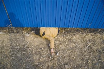 孙竹久房子所在的小区被开发商用彩钢板围了起来,已购房者想要进去看房只能从彩钢板下的缝隙间钻过。