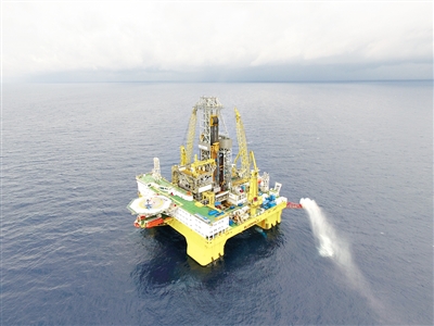 图为在我国南海神狐海域进行天然气水合物试采作业的
