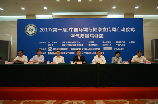 由中国农工民主党中央联合国家发展与改革委员会、教育部、国土资源部、环境保护部、水利部、农业部、国家卫生和计划生育委员会、国家林业局、国家海洋局和中国气象局共同主办的“2017(第十届)中国环境与健康宣传周”启动仪式2日在人民大会堂隆重举行。全国人大常委会副委员长、农工党中央主席陈竺,中共中央统战部副部长戴均良,环境保护部副部长刘华,国家卫生和计划生育委员会副主任崔丽,国家林业局副局长刘东生,中国气象局副局长宇如聪出席会议。