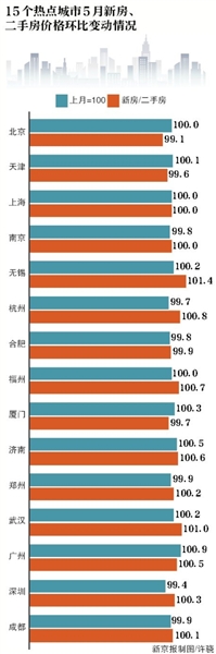 国家统计局发布的数据显示,5月,15个一线和热点二线城市房地产市场基本稳定。同比看,15个城市新建商品住宅价格涨幅均比上月回落,回落幅度在0.5至6.4个百分点之间。环比看,9个城市新建商品住宅价格下降或持平;5个城市涨幅在0.5%以内。
