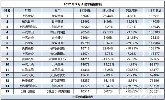 2017年5月A级车销量排行
