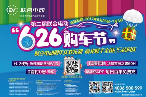 626当日,联合电动官方网站商城正式上线,实现下单订车功能,打通线上线下互联互通,进一步便利消费者的选车购车,全新的送车上门业务更能实现消费者“足不出户,爱车到家”的梦想,宝马i3限时6.26折秒杀以及多款爆款特惠车型将在联合电动官方网站商城与消费者见面。