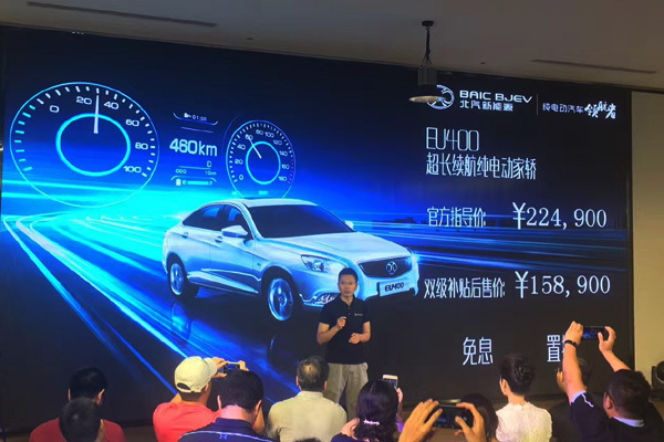 6月26日,北汽新能源EU400正式上市,官方指导价为22.49万元,双级补贴后售价为15.89万元。在EU260后,北汽新能源汽车续航里程再升级。EU400综合工况续航里程超过360km,另外在60km/h等速行驶工况下,其最大续航里程可达460km。
