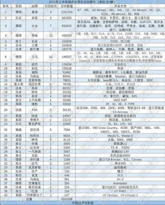 德系+日系占比超八成 3.15前主动召回