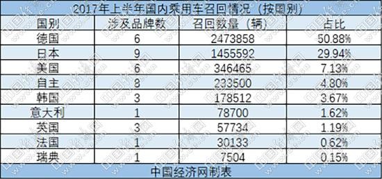 2017年上半年德系召回占比超五成