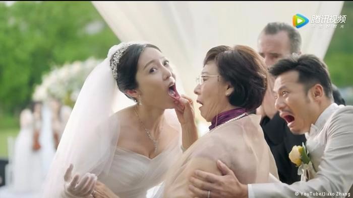 广告画面以一对新人的婚礼现场展开,北京时间“此刻”(微信号:btimenow)看到,突然新娘妈妈出现在画面中,对新娘进行捏鼻子、抓耳朵、检查牙齿、盯着胸部看等行为,随后,出现奥迪二手车的介绍,并有配音“官方认证才放心”。