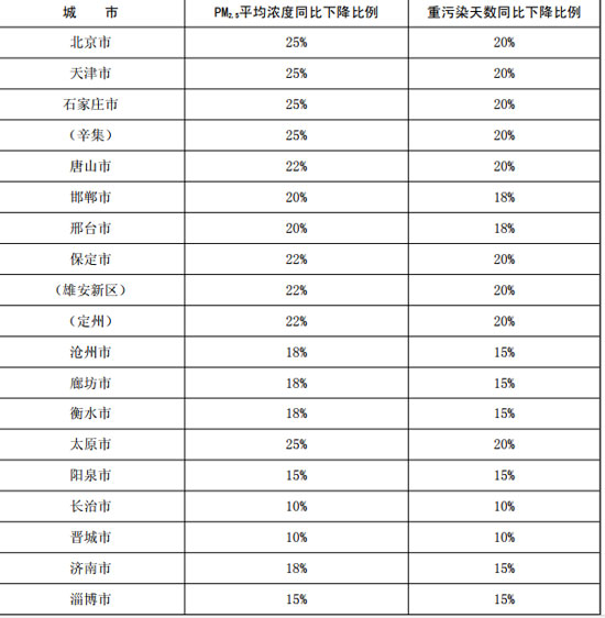 附:2017年10月-2018年3月“2+26”部分城市空气质量改善目标