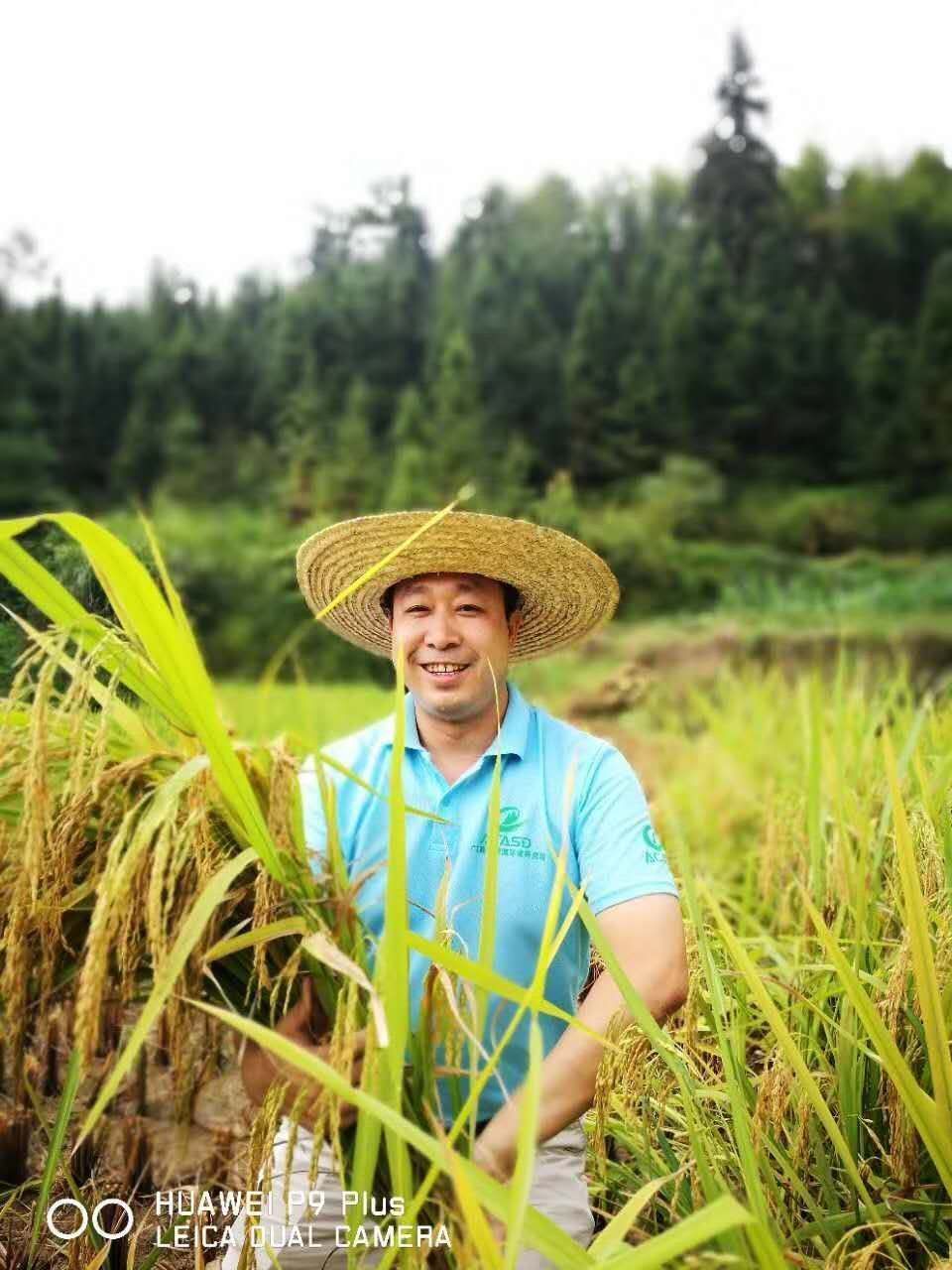 游客在丰收的稻禾中留下倩影