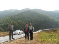 石下村村支书陈伟兵(右2)组织邓泗洲(左2)、方永灼(中)等对石下梯田整体调研后座谈