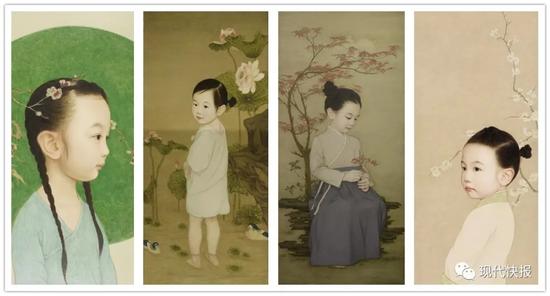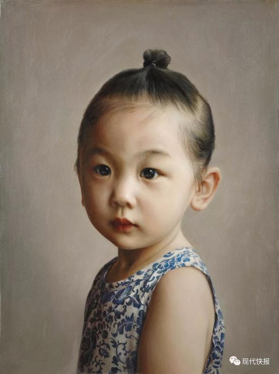 万里告诉记者,这每一幅画都是截取了朵朵的一个瞬间,“ 孩子太小,不可能一直不动,站在那给我画,所以平时,我会观察她的状态,并且拍摄大量的照片,选取一些有微妙神态的瞬间,然后用来进行这种主题创作。”