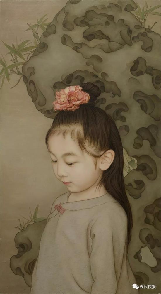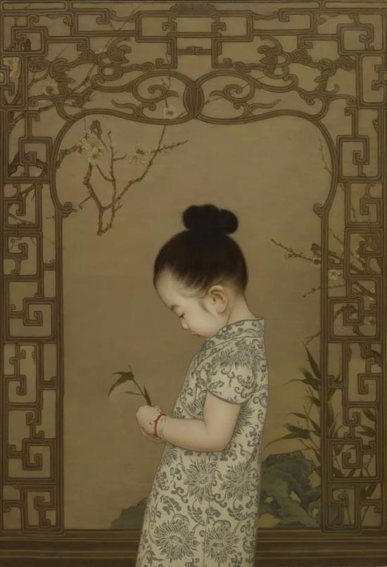 “这些画以西方的油画为基础,融入中国画、工笔画的元素,展现出一种东方的意境。”