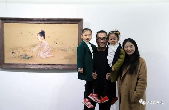 万里和爱妻冯雁、5岁半的大女儿朵朵、3岁半的小女儿萌萌。12 月 26 日,万里的第一次个人画展在南京开展,主角只有一个,就是 “ 女儿 ”。万里说,希望若干年以后,等她们长大了,再回头看,不仅能记起自己美好的童年,还能体会到父母对她们深沉的爱。