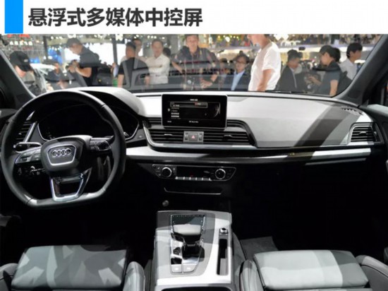 全新一代奥迪Q5L内饰主体选用黑/灰配色方案,多处细节运用镀铬材质点缀,搭配真皮材料包裹的座椅、门板内侧以及方向盘,彰显浓郁的豪华、舒适感。中控面板配备的悬浮式多媒体中控屏与新一代MMI多媒体交互系统,可通过三辐式多功能方向盘操作。值得一提的是,新车还装备了全液晶电子仪表盘。