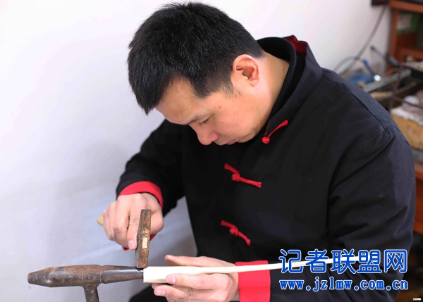 他在做银饰品这件事情上非常的执着,平日里的他喜欢研究各种器物,看有关的的书籍,不知不觉中他对做银器有了自己独到的方法,他是技法的第四代传人,在师傅刘好圣30多位弟子中资质最高,是师傅最得意的弟子。师爷孙常斌常说他上辈子就是银匠,手艺是天生的而不是这辈子学的,说他善于动脑敢于创新。