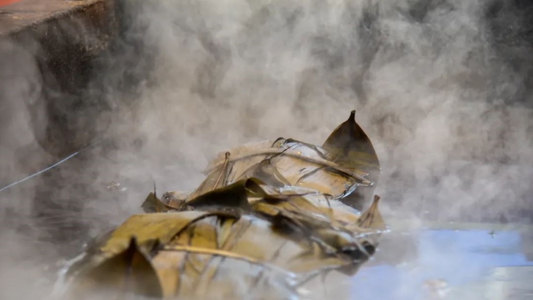 制好粽衣之后,往下就要进行最激动人心的下锅仪式。进入水中后,经过1天1夜的煮制,“粽王”将完成“毕业”前的最后一个课程。
