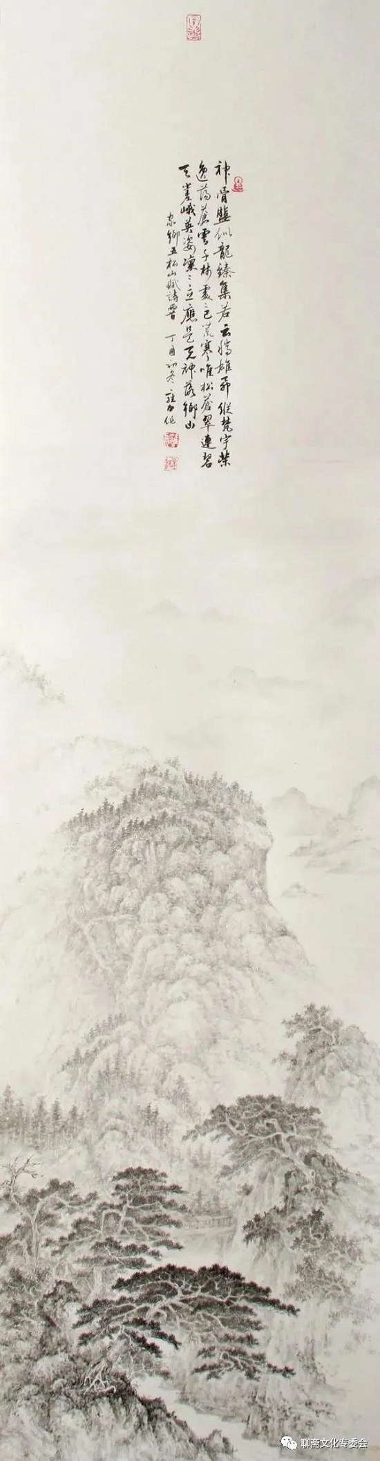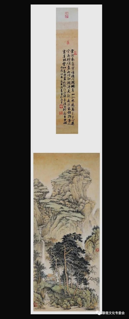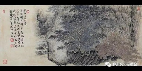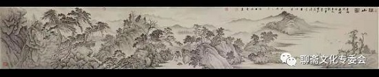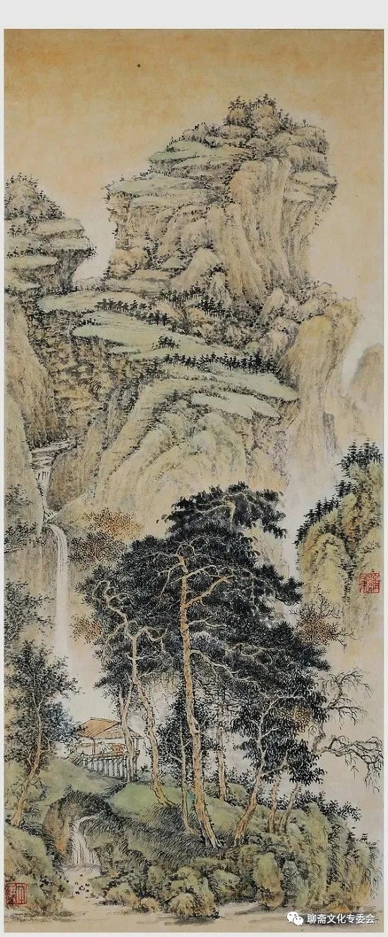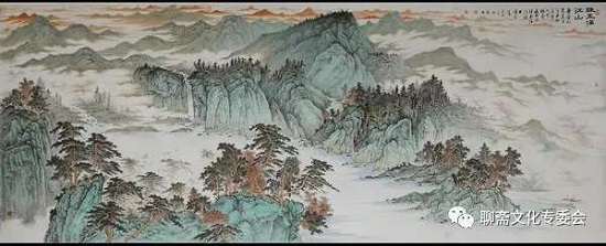 雍力的山水画所描绘的山水风景、伟岸奇峻,重峦叠嶂,烟水苍茫,山峦景物刻划有致,笔墨沉稳,设色淡雅,清新洒脱,有宋画之风,具有大家气象。