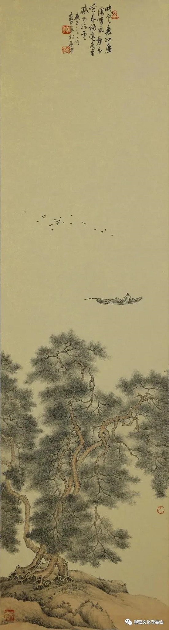 雍力的小品画,尺幅虽小,乾坤却大。小到一棵树,一块石,一个人物,都刻画细微,笔墨精到,意境空灵,韵味十足。