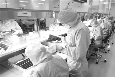 走进品检车间,记者留意到,由于这里生产的手机零部件对环境要求非常高,车间地面可谓一尘不染,进出均须换上白制服。车间里,物件摆放也很整齐。“有的地方还没达到我的要求呢。”廖红秀摆摆手说道。