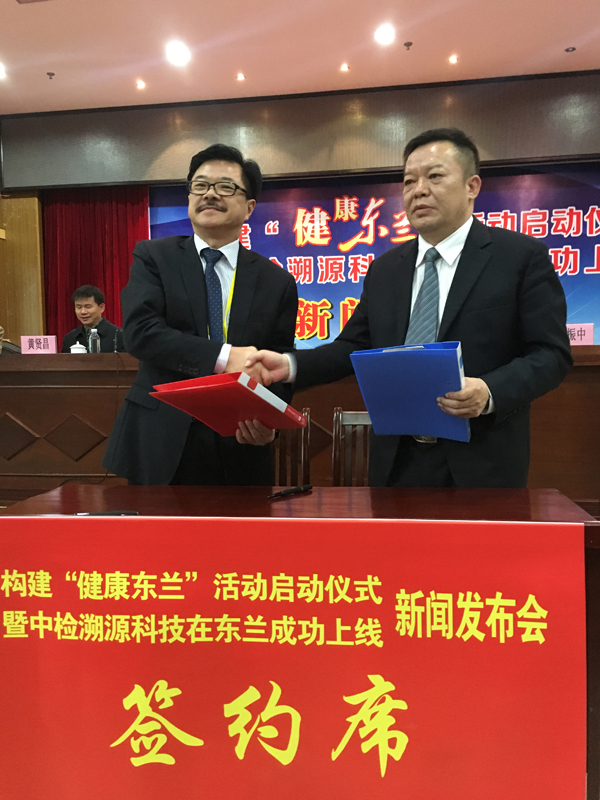 11月8日,构建“健康东兰”活动启动暨中检溯源科技在东兰成功上线新闻发布会,在广西东兰县举行。从此,食品安全溯源技术走进广西,东兰墨米酒厂、东兰山泉水厂在全区率先启用食品安全溯源系统。