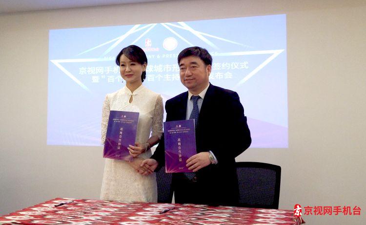双方代表;京视网董事长、京视网手机台台长刘国强和全球城市形象大使创始人张如君博士签署协议,也标志着"百个频道、百个主持"培育计划活动正式启动。现场12位全球城市形象大使展示了各自的风采,北京社区文化促进会会长李建华、京视网股东代表李芳分别做现场发言。