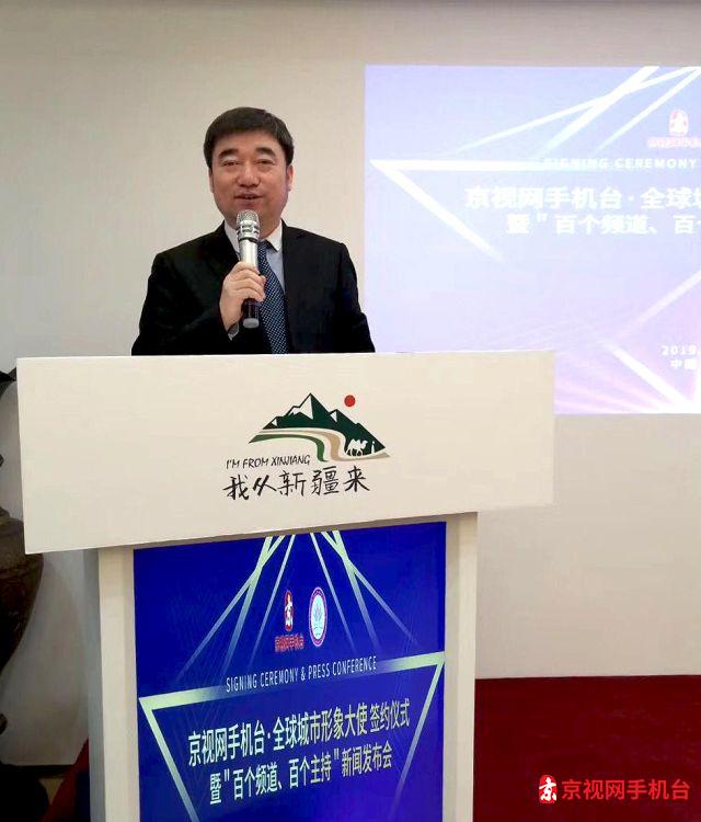 2019年12月16日下午,京视网手机台与全球城市形象大使签约仪式暨"百个频道、百个主持"活动新闻发布会在北京市东城区东单“我从新疆来会议厅”举行。活动由知名主持人高子涵主持,京视网董事长、京视网手机台台长刘国强致欢迎词,并介绍了京视网手机台2020年的发展目标和规划。讲到:唱响时代主旋律、壮大社会正能量,为干事创业,营造良好的舆论环境,是京视网手机台义不容辞的责任。中国不乏精彩故事,需要精彩讲述,需要正能量平台。作为广电旗下的新媒体平台,京视网手机台高举党的旗帜、加强自身平台建设,全面展现新时代的中国风采。