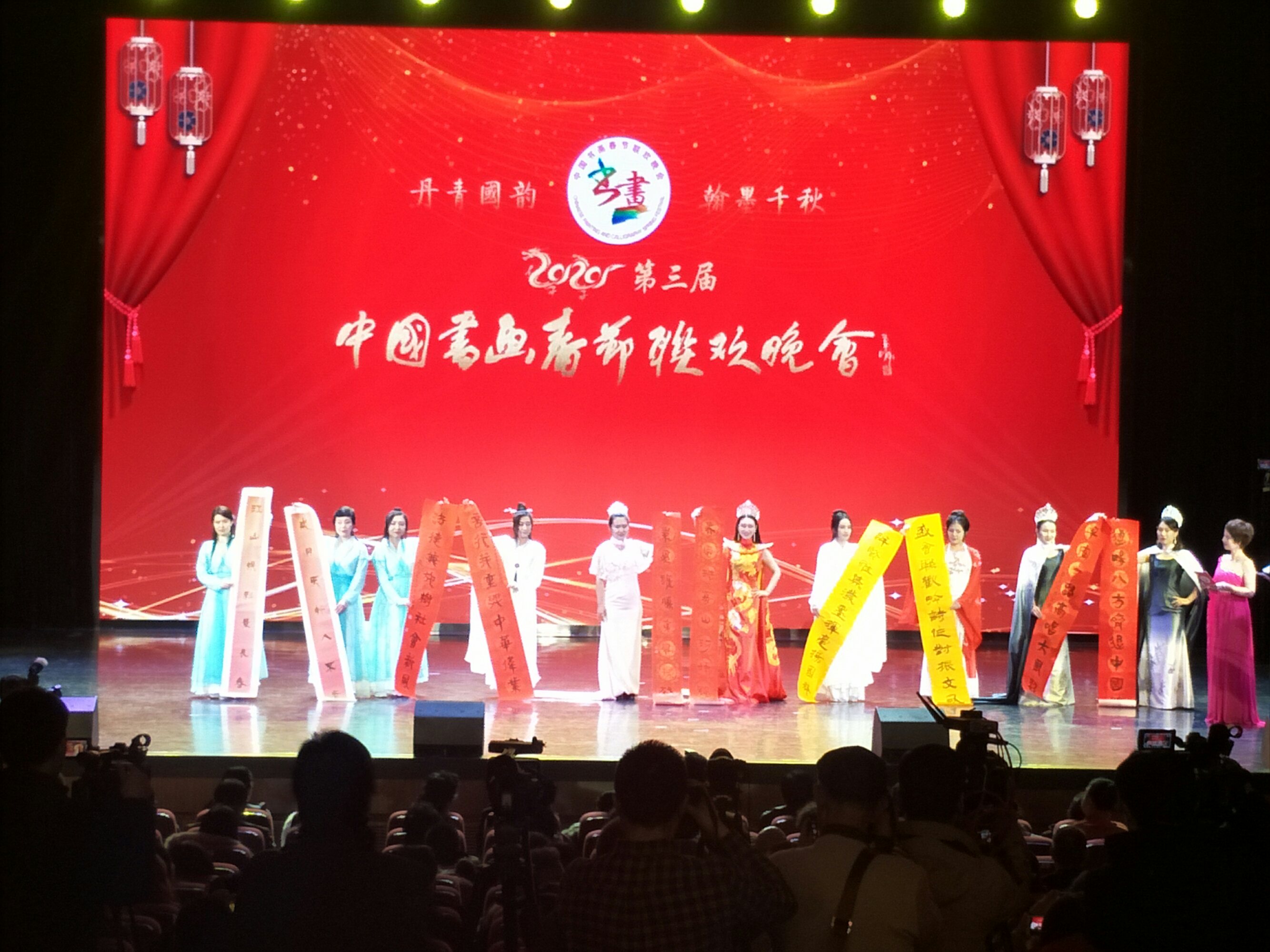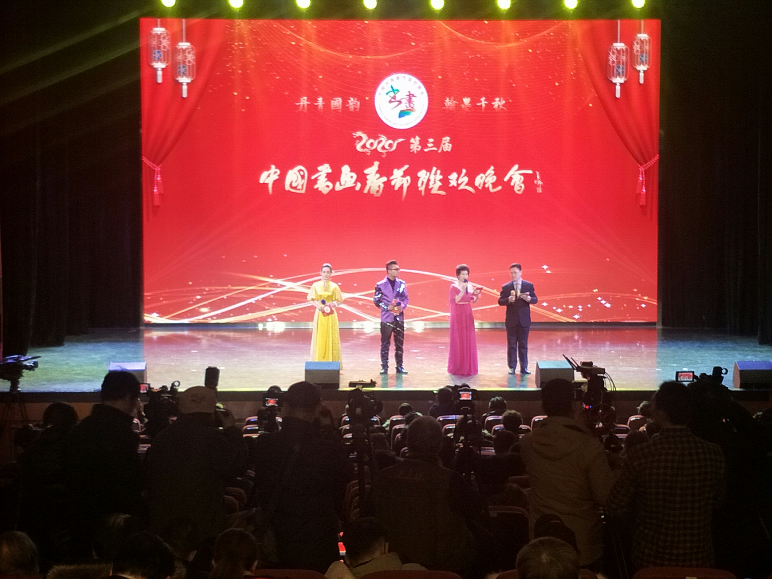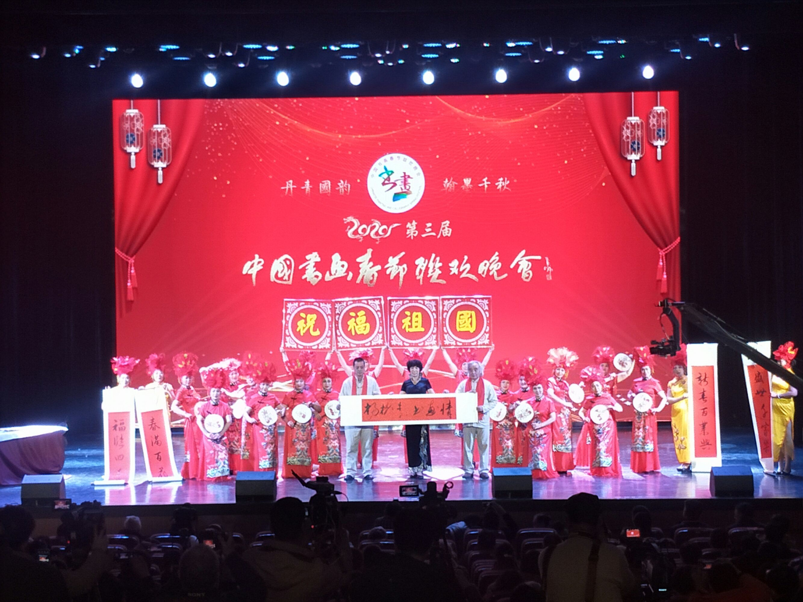 中国记者联盟网 北京讯 (《中国信息报》首席记者 田建海) 丹青国韵,翰墨千秋。瑞雪飘舞,喜润京城。2020年1月8日,在新年到来之际,年度书画盛宴2020第三届中国书画春节联欢晚会北京主会场文艺演出,在北京副中心运河剧院完美上演。来自全国各地的书画家艺术家、诗人作家欢聚一堂,书画家歌唱家演艺人员为全国的观众,呈现出一场最具中国传统文化特色的艺术大餐。晚会由唐渊、柏荷、杨海鹏、李牧義、李军主持。