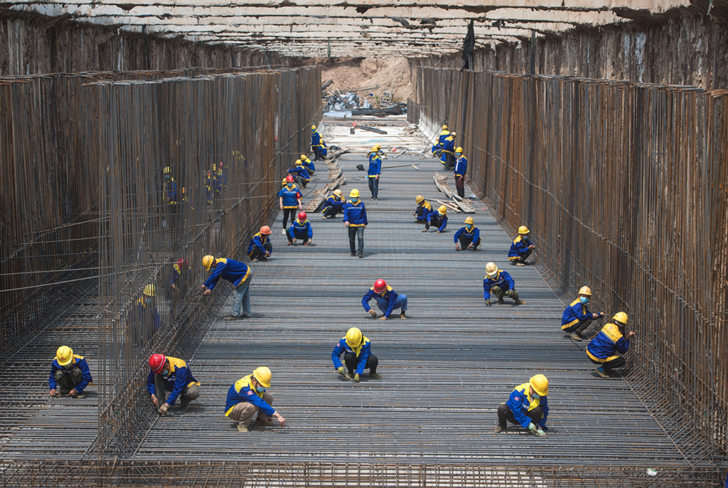 2020年4月30日,来自中铁七局的建设者在武汉武九北综合管廊工程施工现场作业。新华社记者 肖艺九 摄