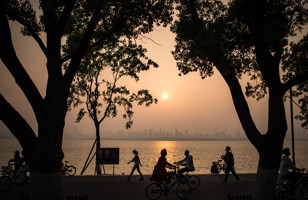 2020年5月5日,游客在武汉东湖绿道游玩。新华社记者 肖艺九 摄
