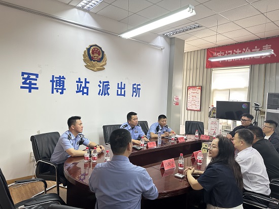 全球融媒体联席会采编中心 北京讯(首席记者 田建海 记者 袁芳)七月流火战酷暑,警民鱼水情谊深。7月5日上午,新时代鱼水情(拥军爱警)公益行顾问、中国信息报主编、全国“千县汇典·万村修志·全民出书”大型文化工程总负责人田建海,国普网拥军爱警频道总监、《作家报·拥军爱警》专刊主编、新时代鱼水情(拥军爱警)公益行活动组委会主任马新存,《 作家报.拥军爱警》专刊副主编、新时代鱼水情(拥军爱警)万里行活动组委会常务副主任、国普网拥军爱警频道执行总监孙海平,国普网拥军爱警频道北京顺义区拥军爱警公益服务站站长、北京乾翔企业管理有限公司董事长付进先,公司总经理、副站长孙继明,副站长赵云利、陈萌等一行来到北京丰台区军博站派出所,慰问派出所一线公安干警。派出所所长于磊,副所长张达对田建海、马新存一行到来表示热烈欢迎,于磊所长介绍了派出所发展历程。