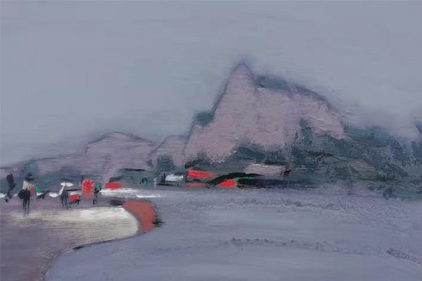 孙克义老师的油画色彩布局繁杂而富有层次感,视觉冲击力极强。既有西方的高贵与浪漫,又充满汉文化的深沉与本真。细细体会,您也许会感觉到甲骨文的沧桑和厚重;还可能体会到青铜器的斑斑锈迹与历史;同时。中国书法和国画元素与痕迹如同袅袅炊烟在意境中悠悠飘荡。