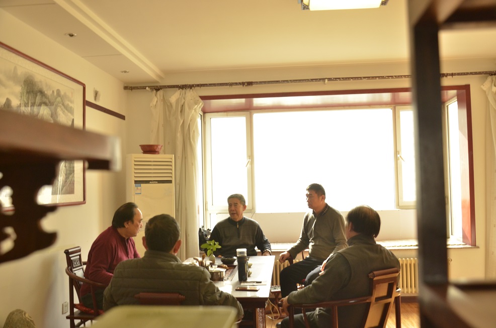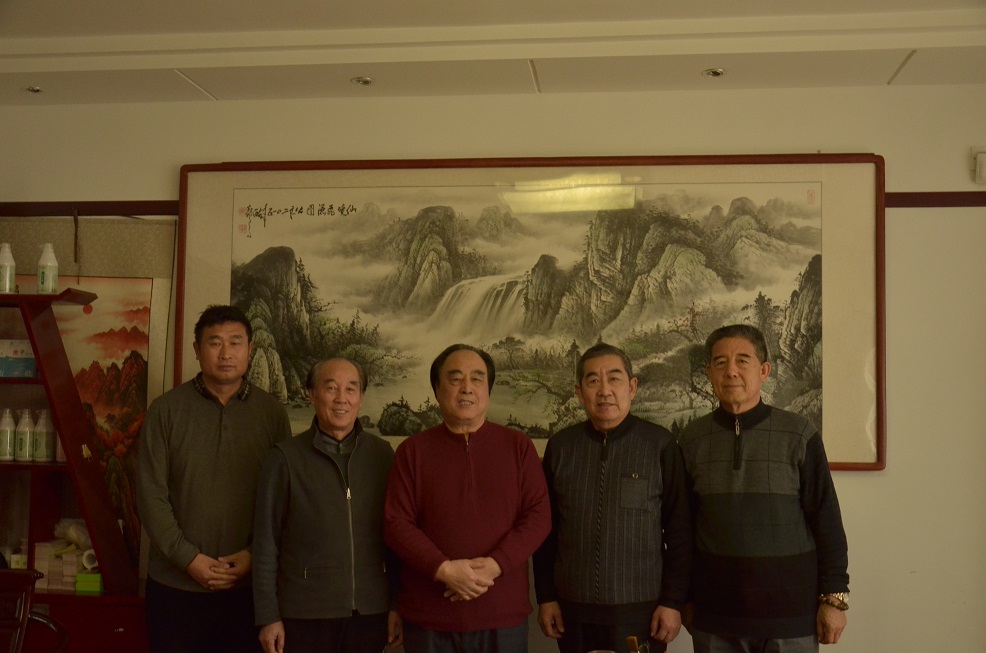 周雁翔(中)会长主持会议、常务副会长(右二)艺术中心郝恩波(左一)