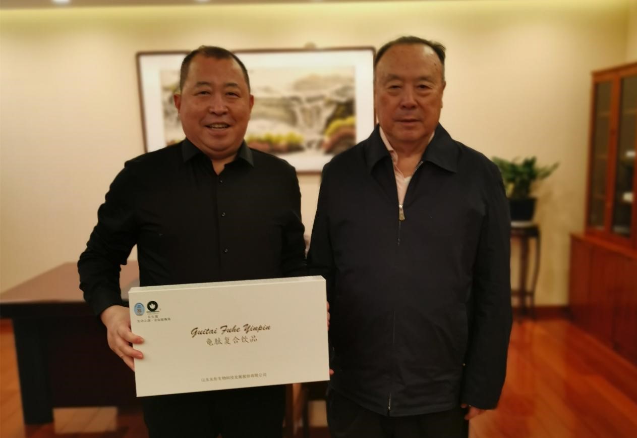 长生露集团董事长陈聚宝向白立忱副主席赠送了集团最新研发的长生露口服液高端产品:龟肽复合饮品,并诚挚感谢白立忱副主席对民族品牌的大力支持,对长生露产品的殷切期望,提前祝白立忱副主席新年快乐、阖家幸福、身体健康!