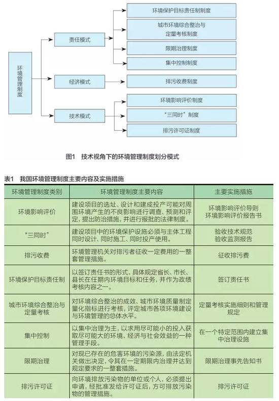 分析上述划分模式可以发现,更多的是从宏观管理的角度进行划分,没有考虑技术因素。如果将技术因素考虑在内,进一步梳理发现我国环境管理制度有另外一种划分模式。