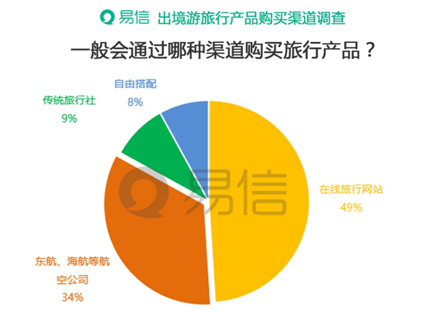 据易信数据调查显示,在购买渠道的选择上,大部分网友更看重渠道内产品的“内容丰富,经济划算”。49%的易信网友选择通过OTA在线旅行网站来购买出境游旅行产品,另有34%的易信网友则倾向于选择航空公司推出的旅行产品,此外,选择传统旅行社和自由搭配的易信网友仅占调查总人数的9%和8%。