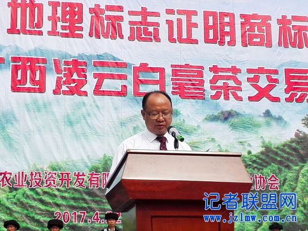 “凌云白毫”地理标志证明商标启用仪式于4月22日上午在凌云县行政中心前举行,凌云县县长莫庸向社会推介了凌云白毫茶,获得证明商标使用证的茶叶企业代表做出种植、加工技术标准等公开承诺。