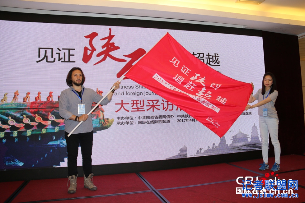“中国记者联盟网 陕西讯,4月24日上午,“见证陕西追赶超越”——2017“CRI中外记者看陕西”大型采访活动在西安启动。在为期5天的采访行程里,来自法国、日本、新加坡、印度、泰国、马来西亚、埃及、土耳其、乌拉圭、坦桑尼亚、克罗地亚、阿尔巴尼亚、印度尼西亚、老挝、尼日利亚、朝鲜等20个国家的中国国际广播电台(CRI)旗下外籍记者和中央、陕西省内媒体记者组成的70余人的采访团,将共同开启一场向全球报道陕西之旅。