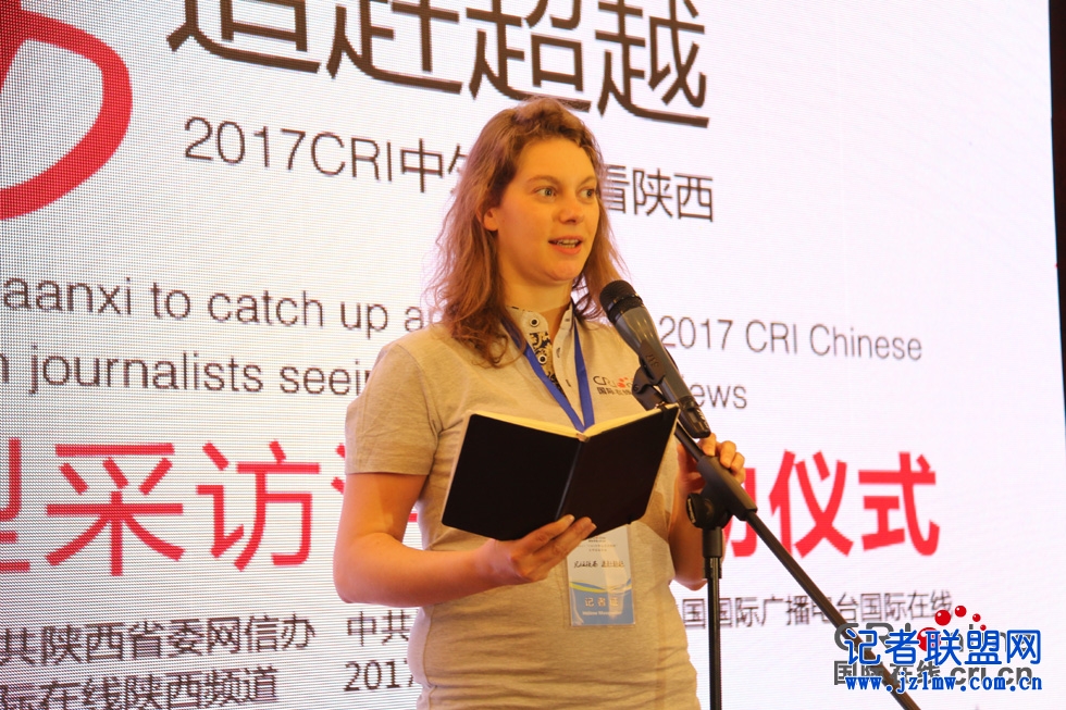 来自法国的中国国际广播电台记者艾琳娜代表外籍记者发言。她表示,之前所听闻的西安是世界文明历史古都,但一路所见却是高楼林立的现代化都市。这种古今交融的城市给人非常棒的感觉,相信在接下来几天的采访中,西安和陕西会给各位记者带来更多惊喜。